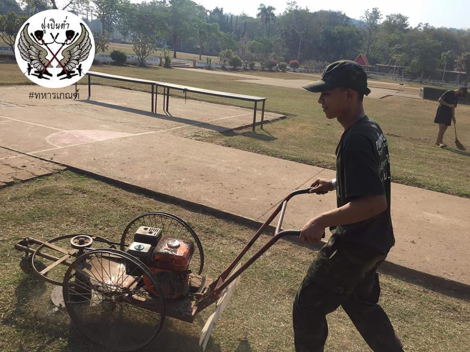 อยู่จนจะปลดแล้ว ยังตัดหญ้าอยู่เลย ท.ทหารผลัดปลด ใกล้ปลดแล้ว แต่ยังเห็นอยู่ในสนามตัดหญ้าอยู่เลย ชีวิตทหารเกณฑ์นี่แหละ ไม่มีคำว่า “สบายจนวันสุดท้าย”